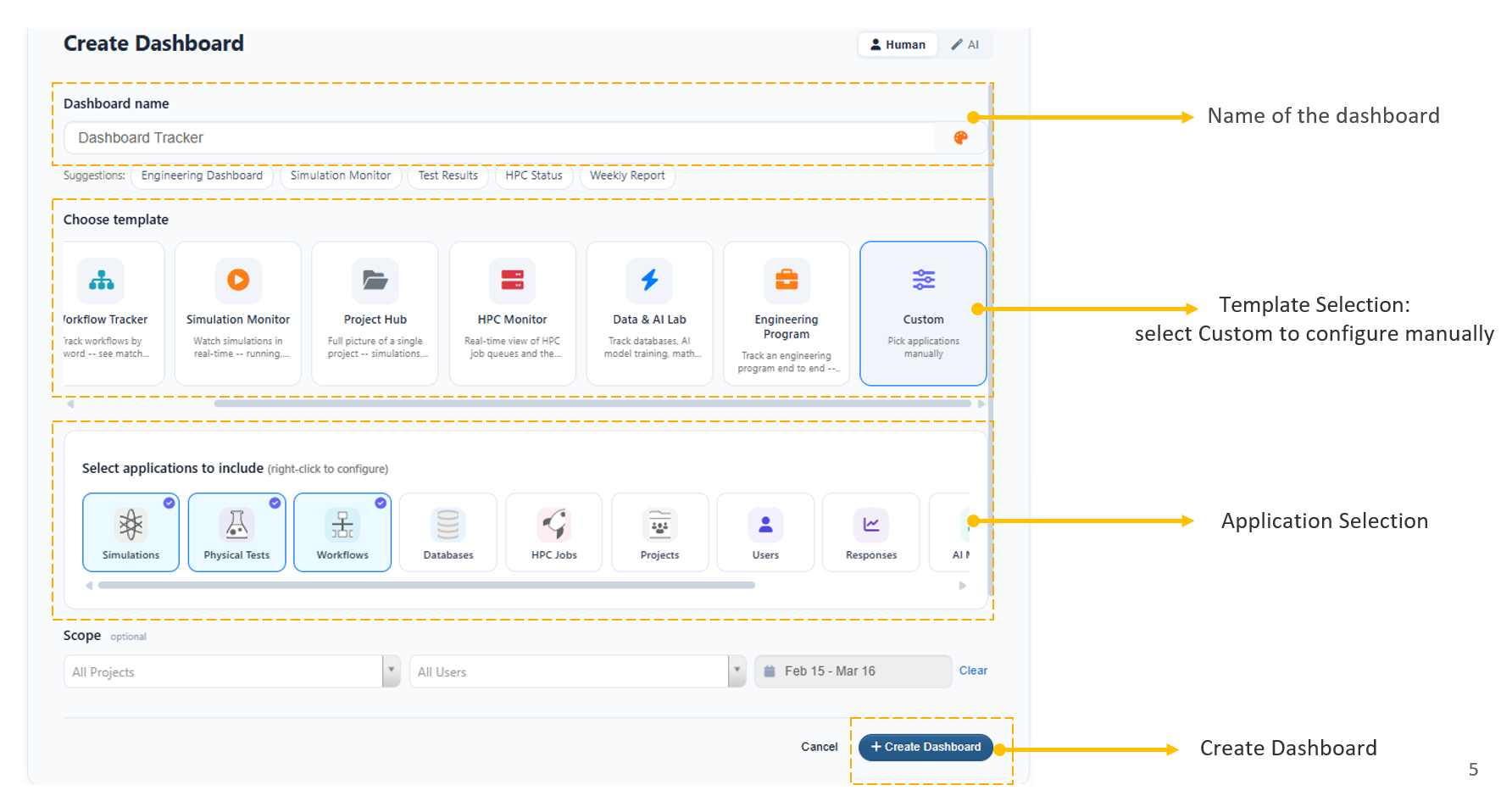 Dashboard Name: Custom identifier (e.g., Engineering Dashboard).
