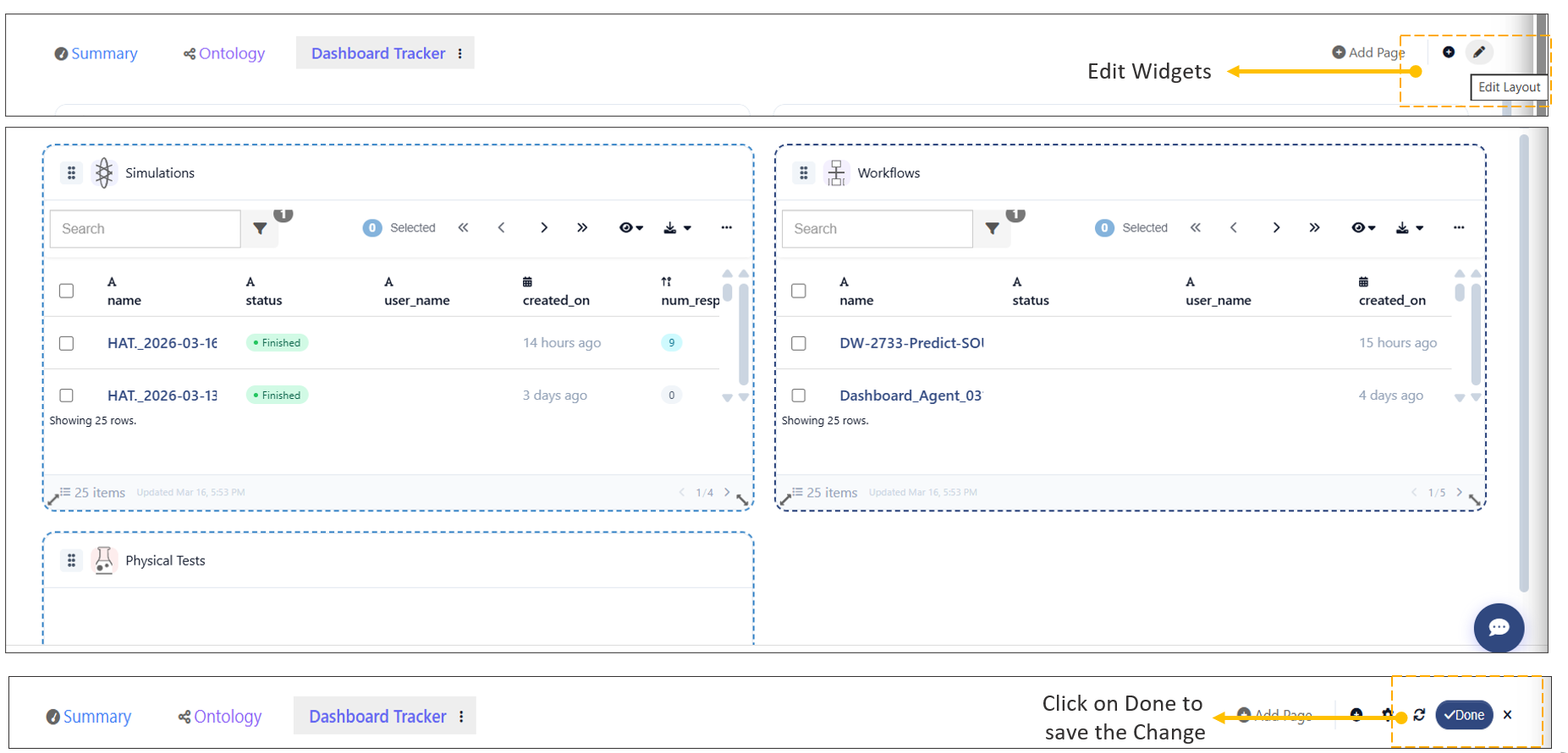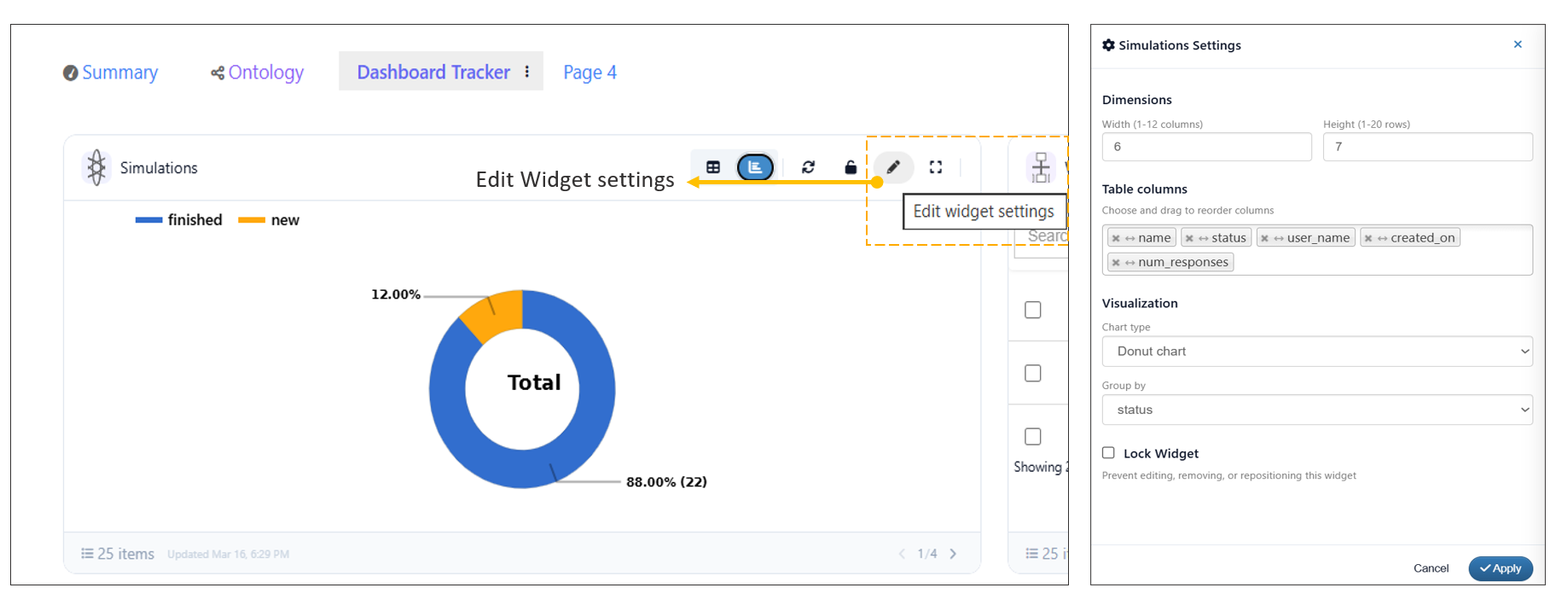 Users can modify widget settings directly from the Dashboard.