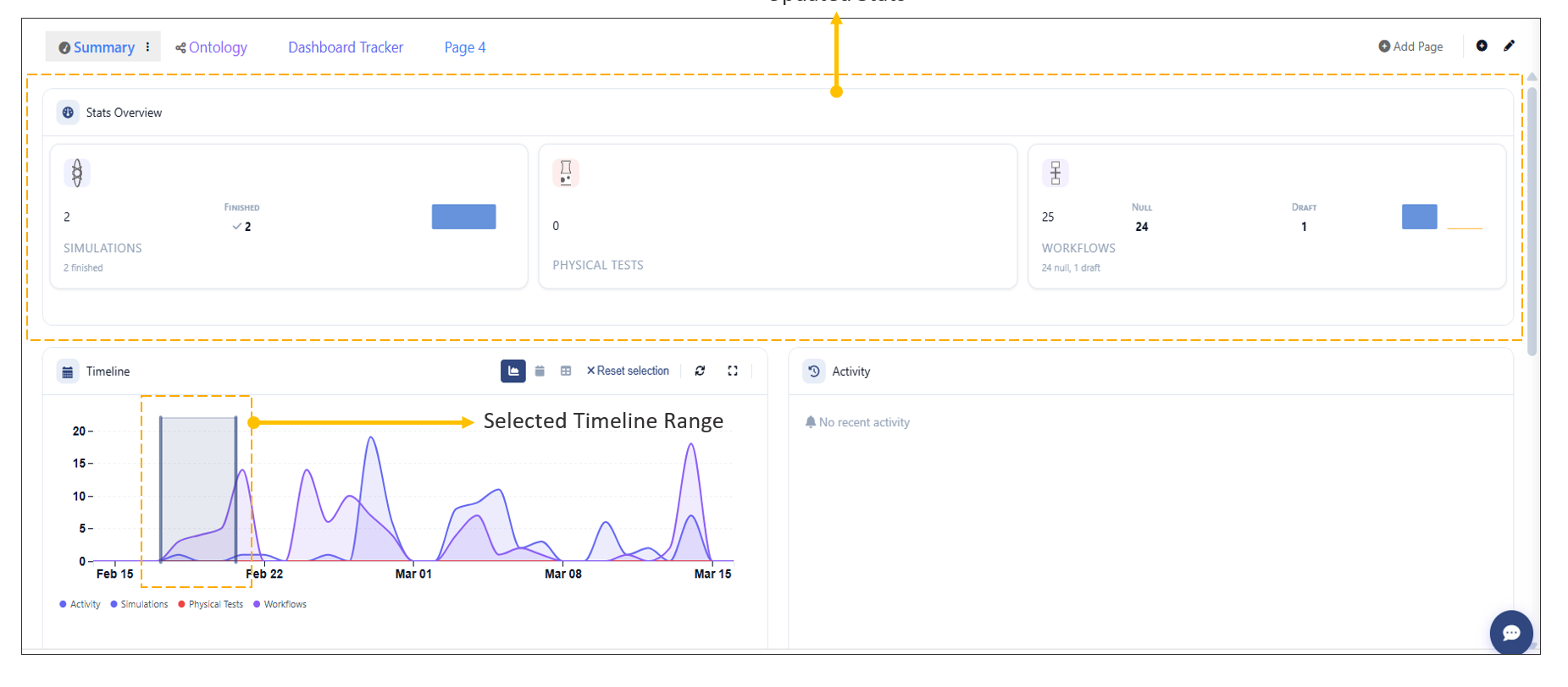 - The Stats Overview will automatically update based on the selected timeline range.