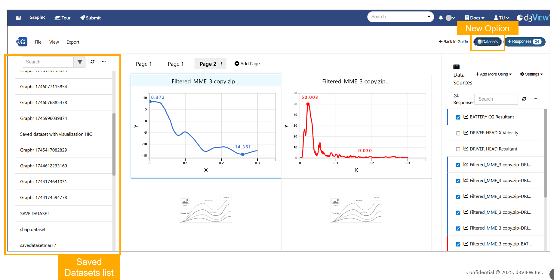 Added new option called Datasets in the GraphR application, which displays all available Simlytiks saved datasets that can be selected and viewed directly within GraphR.