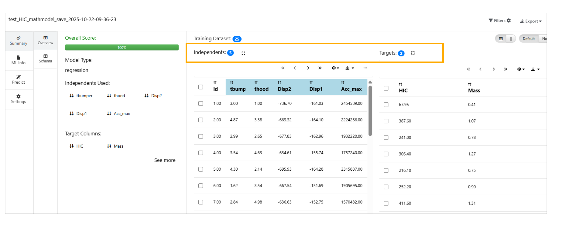 In the comparison window of ML Models, Summary Tab has new chart types for Independents, Targets and other options in the header.