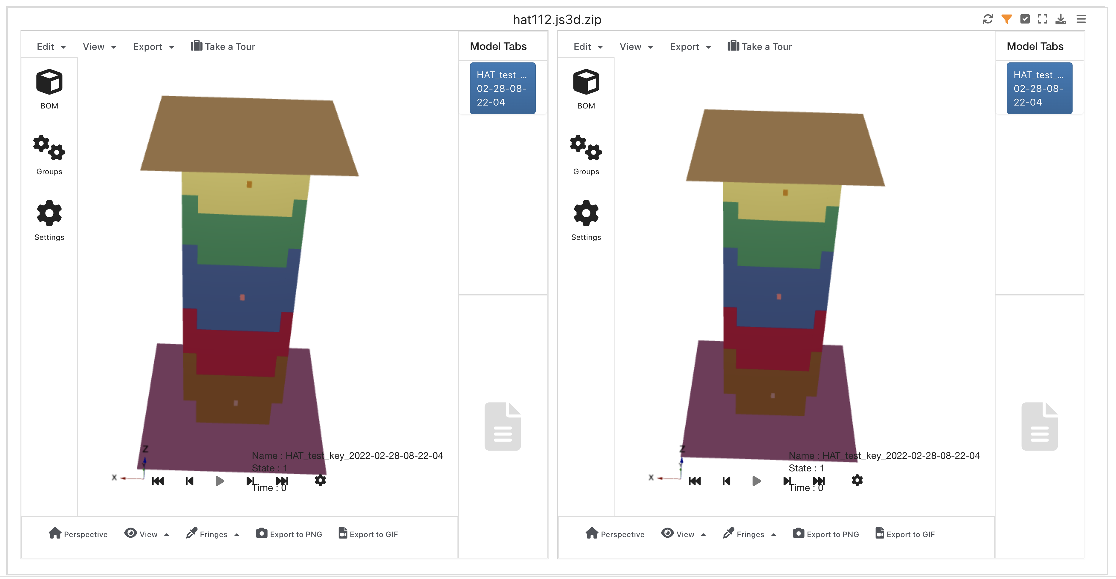 After we make any necessary updates, we can play our model to see changes in its fringe colors.
