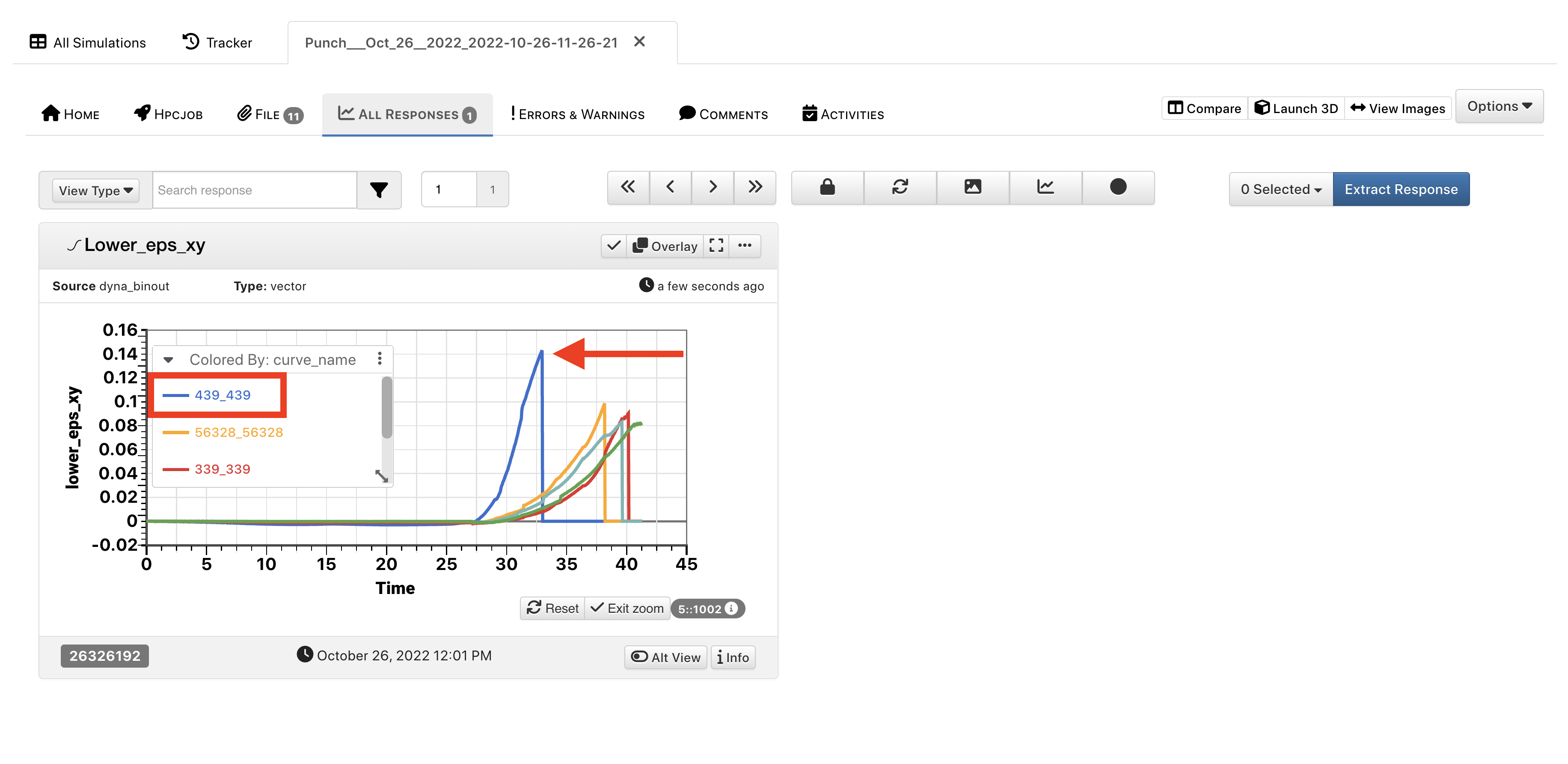 In Simulation to physical test comparison, the names of the simulation, color and thickness for the curves in the responses can be modified and saved. These changes will be saved and observed in simlytiks after comparison.