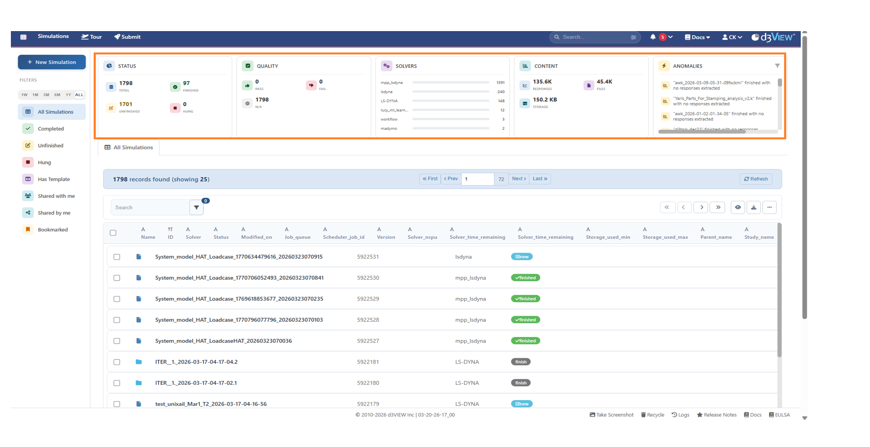 As scientists and engineers, we all know the importance of simulations in solving complex real-world problems safely and accurately. Simulations make information and data conveyable for better decision-making. d3VIEW provides the ability to manage, create, track, compare and share your simulations and their data more effortlessly and efficiently. The Simulations application is divided into four main parts: Preview, HPC Job, Files and Responses. In this tutorial, we’ll review navigating the home page and these sections, so you can start managing your simulations more effectively.