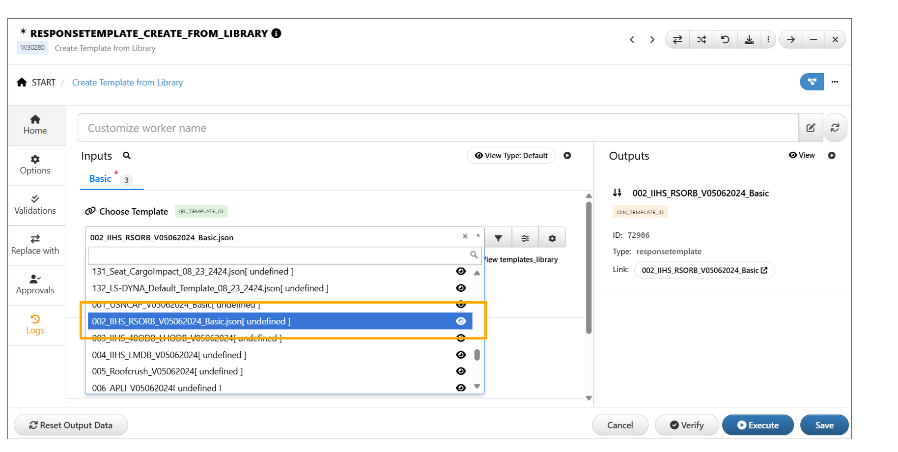 For this section, we will use the Templates application and upload a IIHS SORB template file from our local machine and review the following.