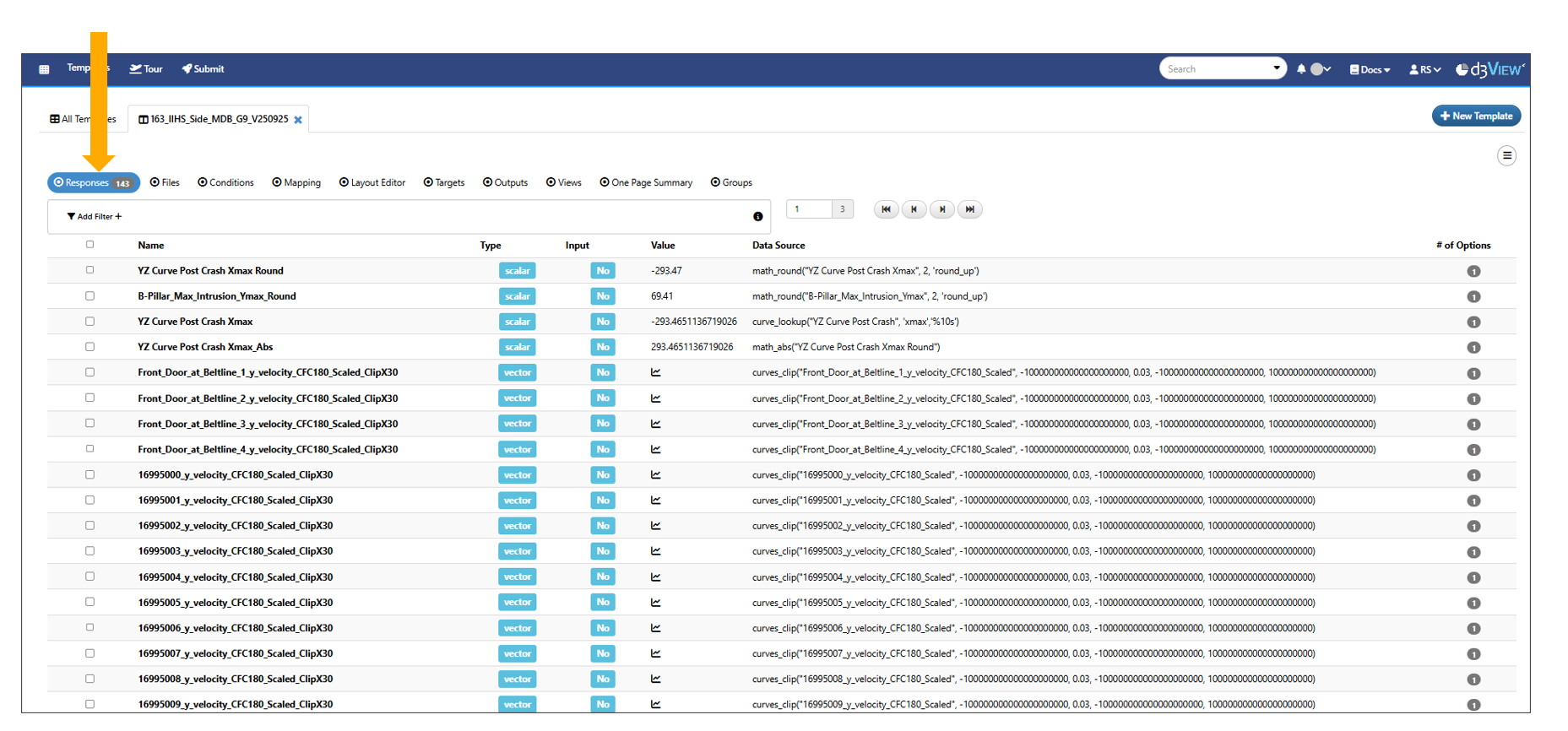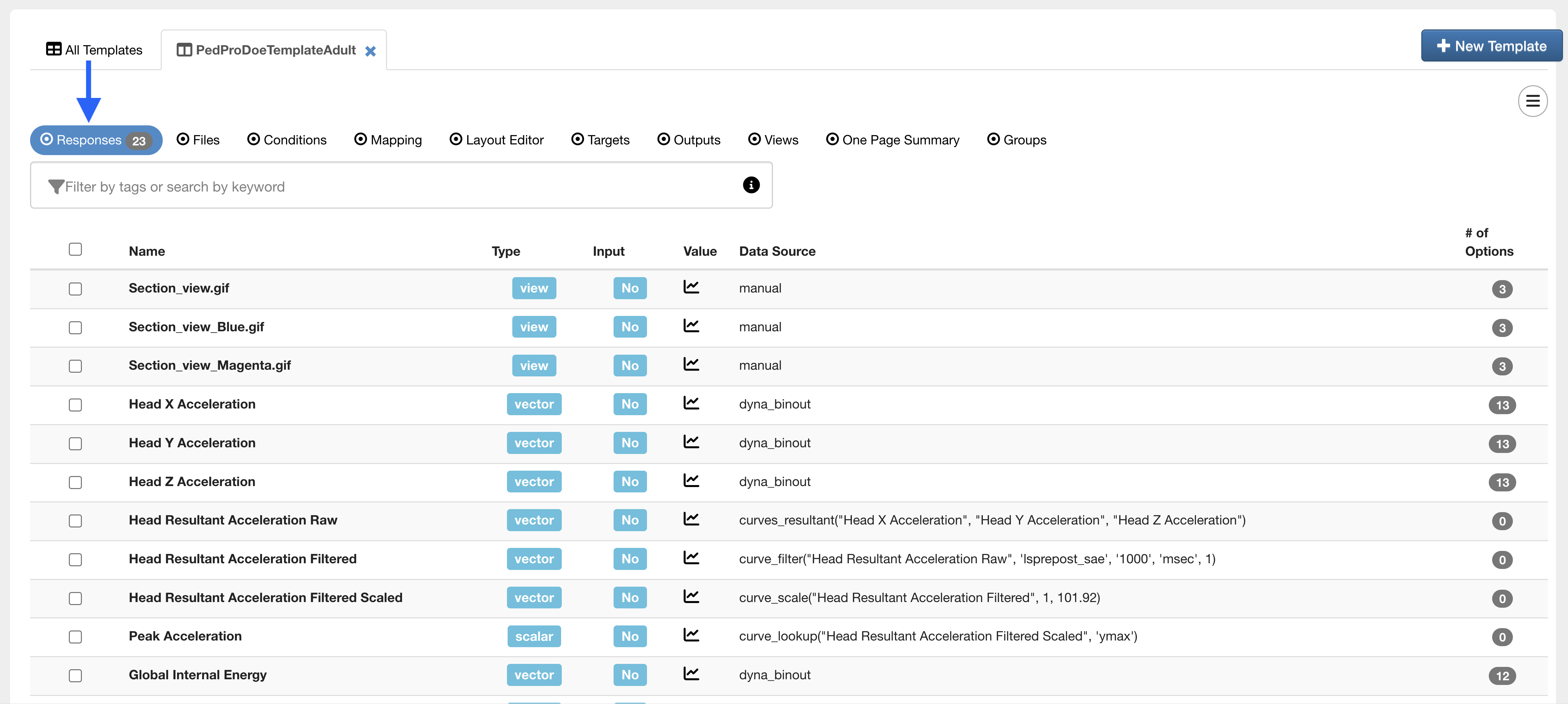 Upon opening the template, we’ll see under the Responses Tab all the data outputs that will be extracted from our simulation when applying this template.