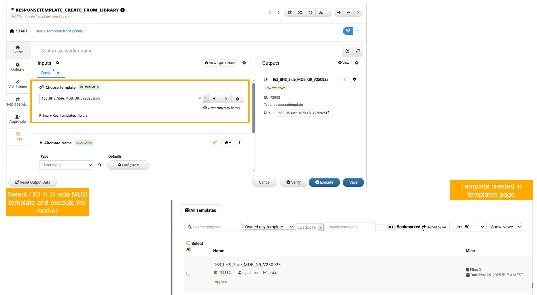 - Once the worker is executed, the system generates a new template entry under the Templates section.