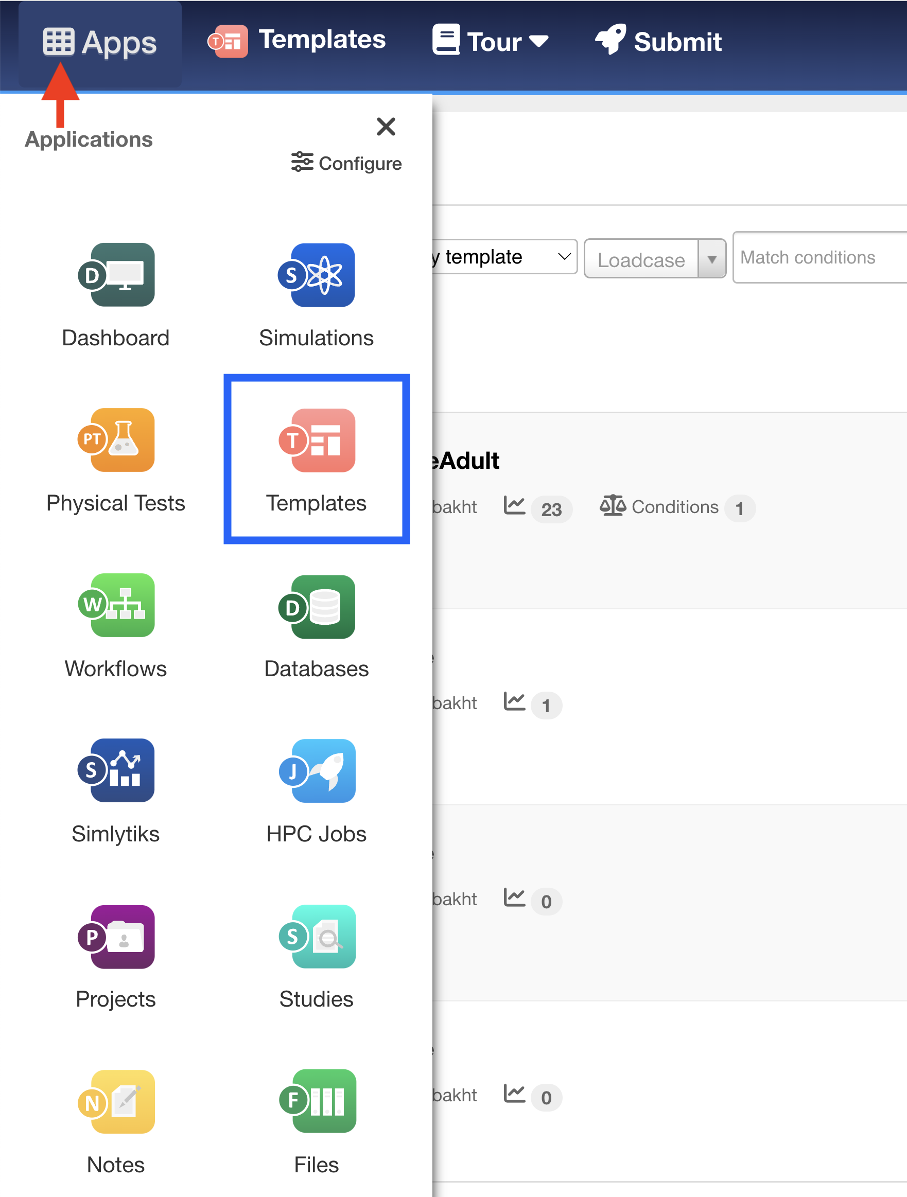 To get started using our Ped Pro Template, we’ll need to upload it onto the platform under the Templates Application. Use the application menu at the top left corner of the webpage and click on the Templates icon to navigate to the page.