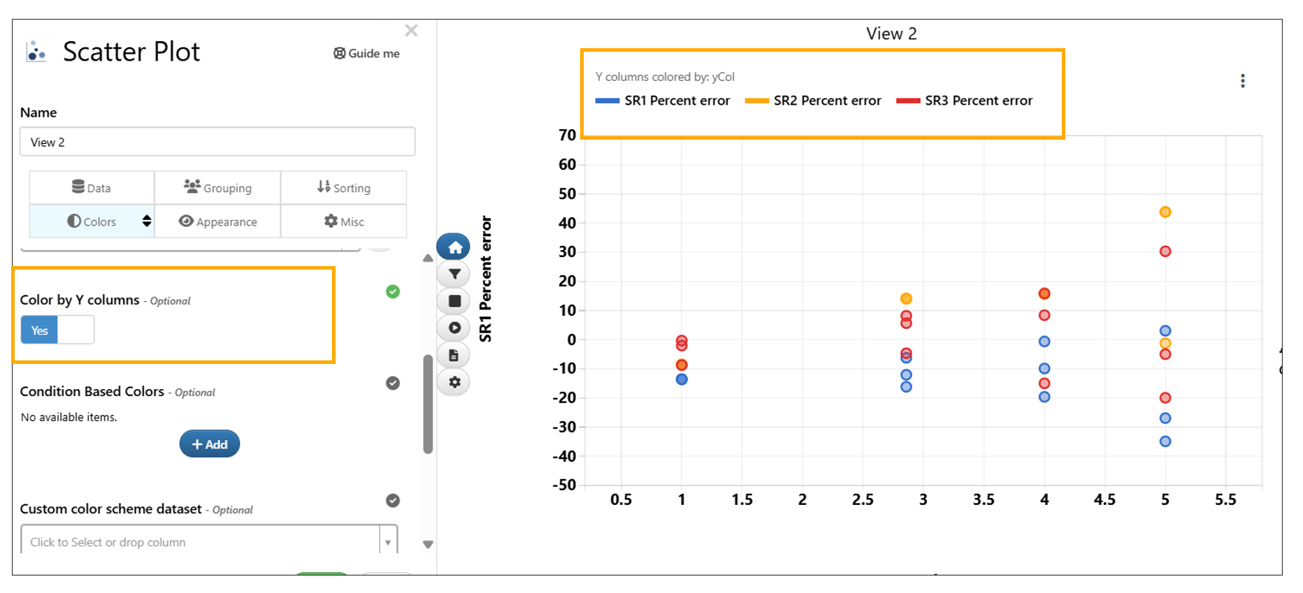 New input features Curves By and Curve color by are added to scatterplot visualization in Simlytiks.