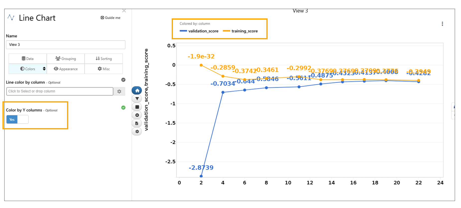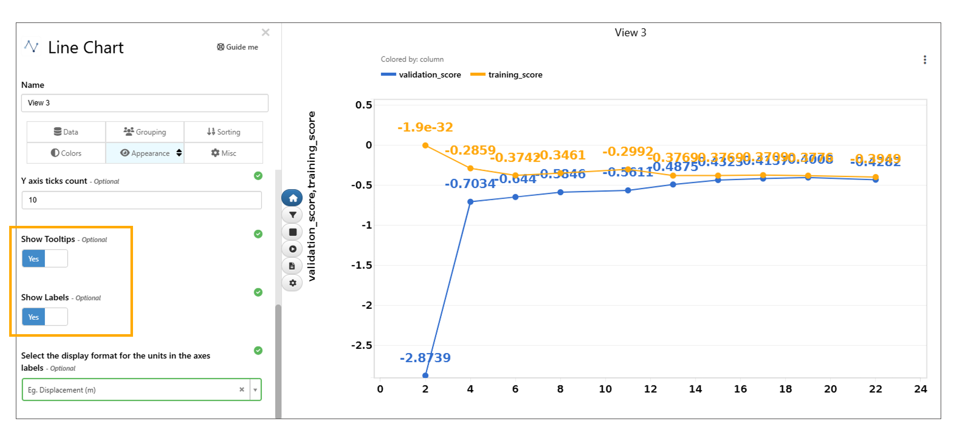 New options like xmin, xmax, ymin, ymax, xTicksCount, yTicksCount are added in Multiline chart visualization.