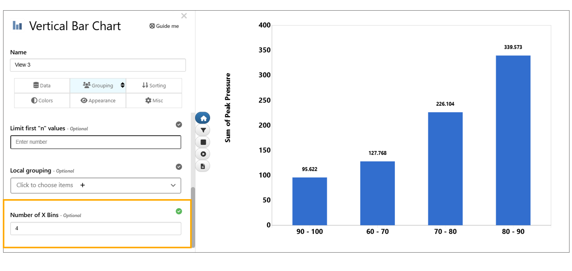 3D Bar chart now supports binning for xBy and yBy with common options to provide increment in bins, showing only the min values, autofit, number of bins etc in Simlytiks.