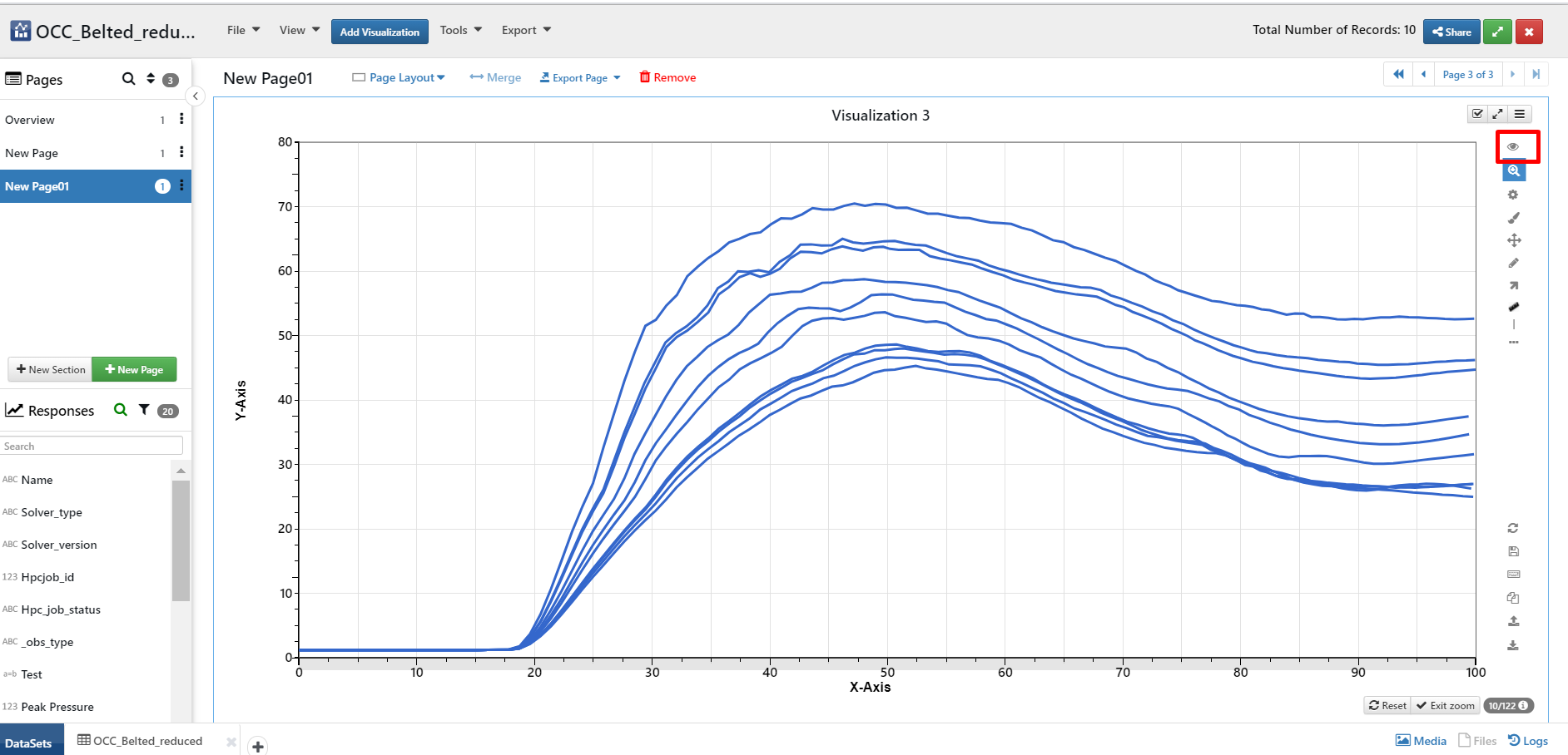 We can create a New dataset from different formats and different sources such as importing a local file, connecting to a database, viewing simulations or experiments, and viewing sample datasets by clicking on the ‘New Dataset’ button on the top left corner of the Simlytiks page. Once the data is imported, we can view the contents and explore them using different chart such as basic table or vertical bar chart. For more information, please read Importing Data.