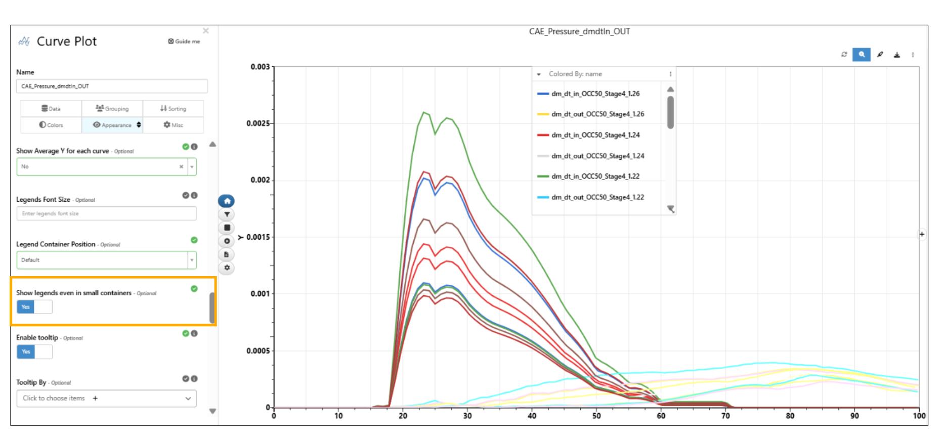 The curve responses on the left side in Simlytiks now have default Color By to be name column and response can be enlarged and viewed.