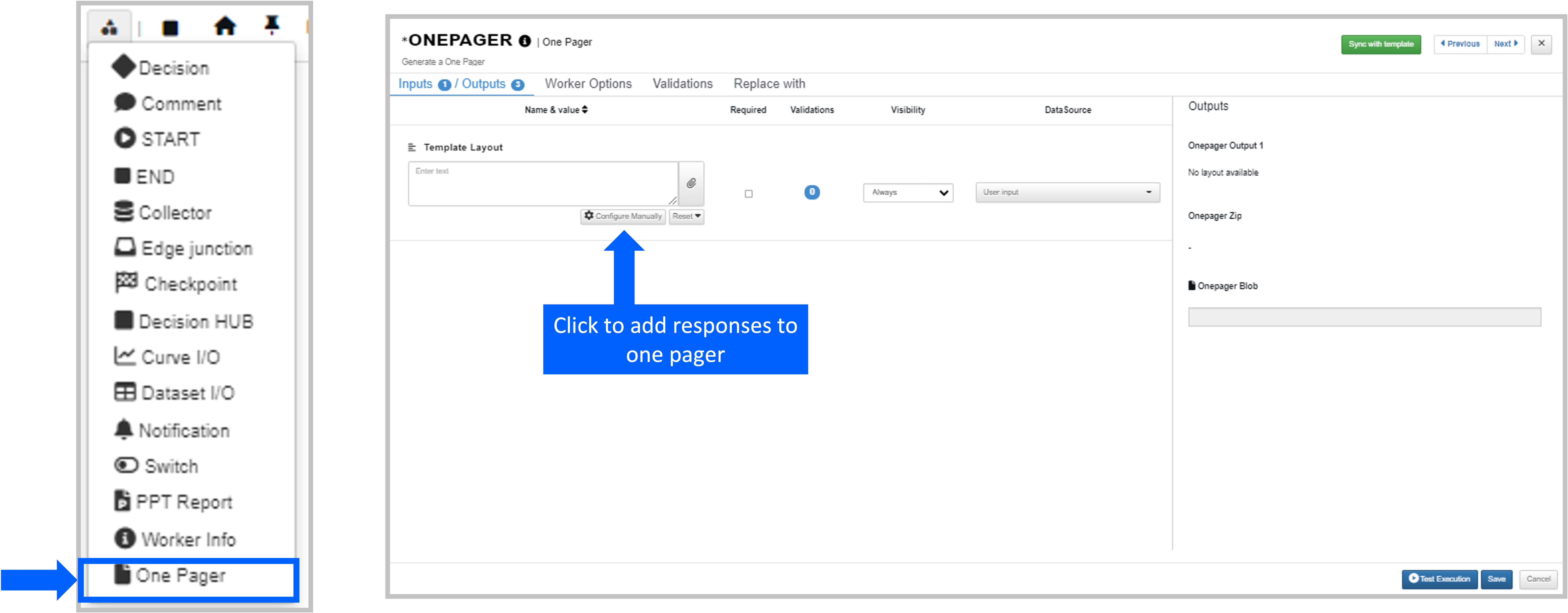 Another way to add inputs to the report generator is directly from a worker modal.