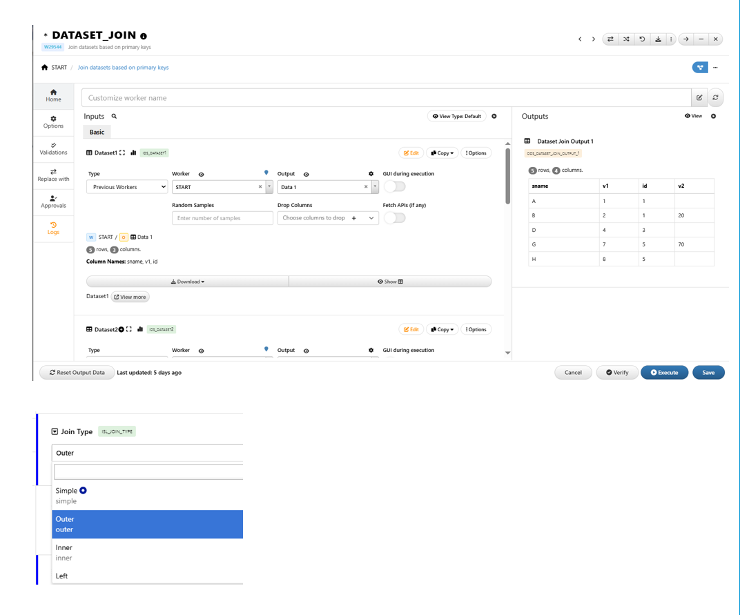 1/ When we have two datasets and we want to join them together, we can use Dataset_Join worker.