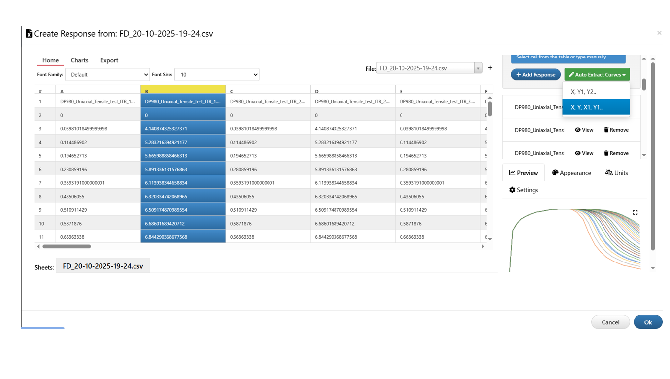 Under a curve worker, we can add sample data by clicking on “Choose from sample” under the drop box for the curve input. Then, we’ll pick our x and y ranges for our curve in the excel viewer.