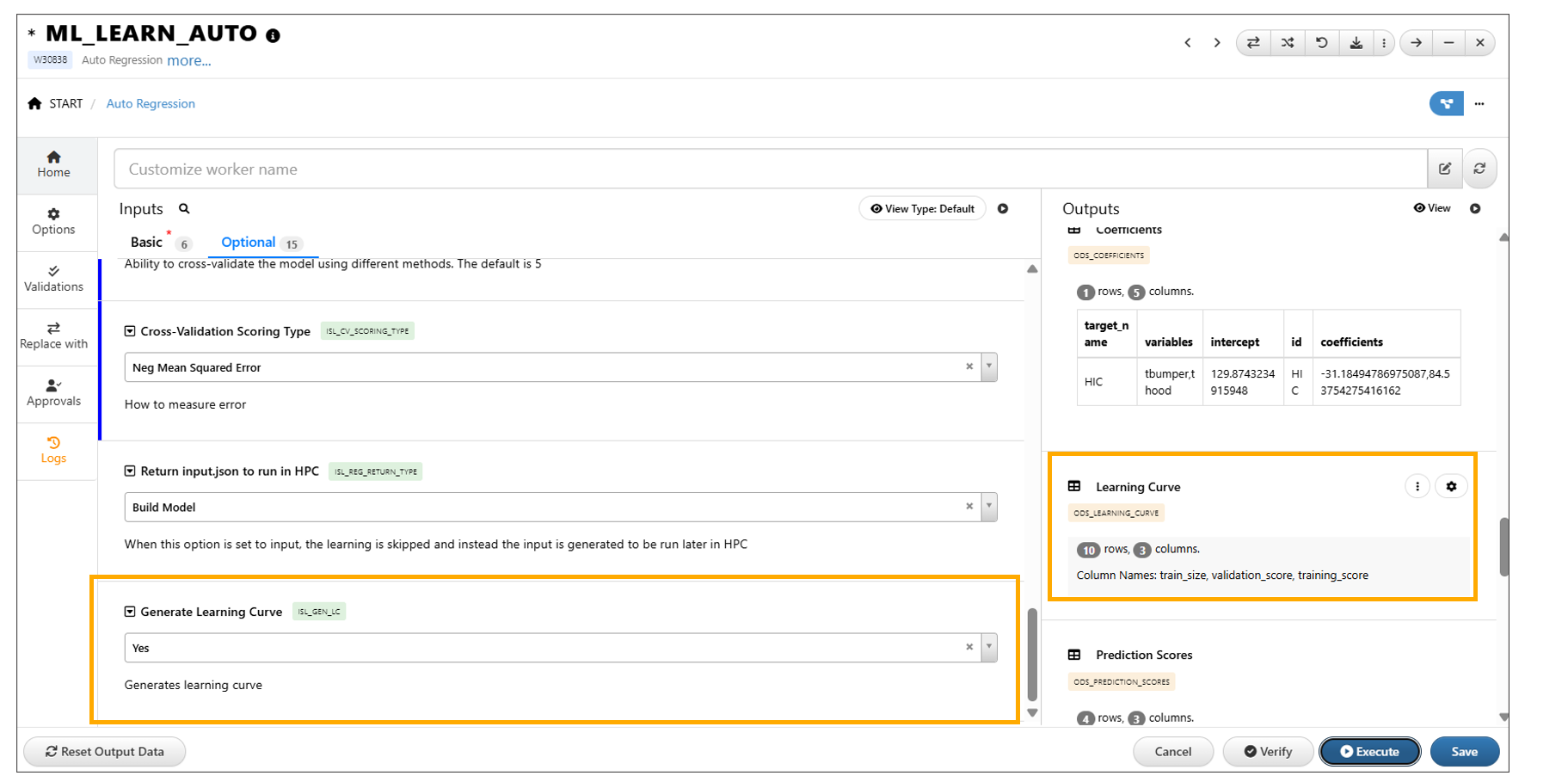 *ML_LEARN_AUTO worker now includes a new input option called Generate Learning Curve in workflows.