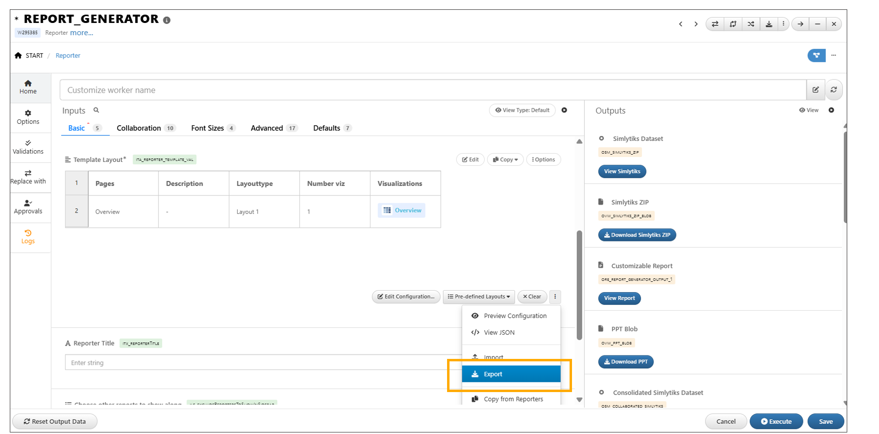 New input to download the collaborated PPT on execution is available in the Reporter worker which will execute main report, collaborated Simlytiks report and will automatically download the consolidated on complete.