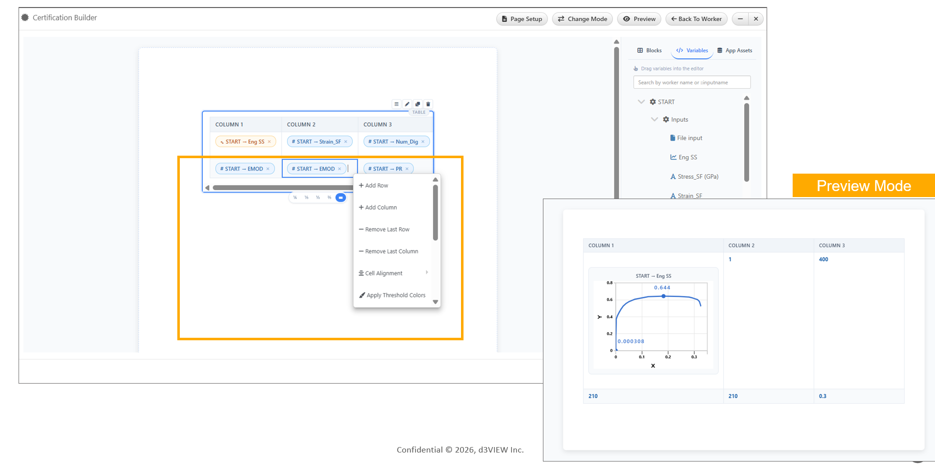 The Certification Builder now supports cell alignment options within table blocks. Users can align cell content to the left, center, or right using a simple right-click context menu. This enhancement improves formatting flexibility and ensures better presentation of tabular data in generated reports and certifications.