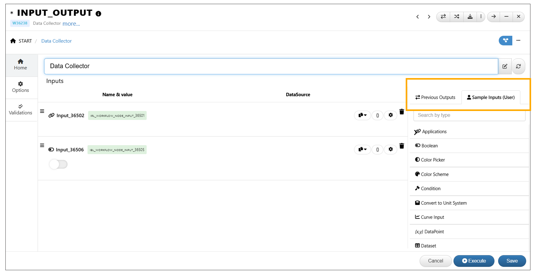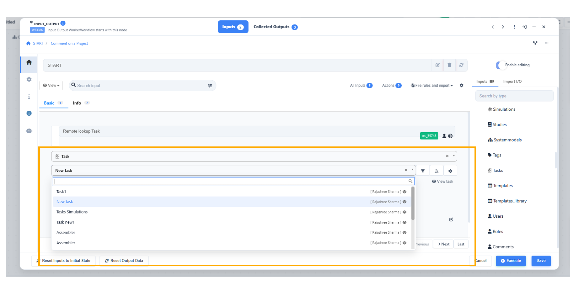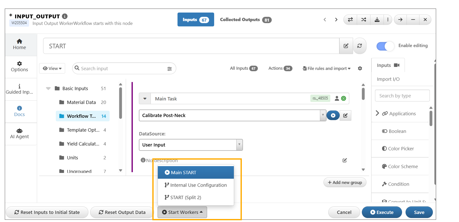 New option in Start worker input’s context menu to add the inputs to a dataset row using match maker is available and a dataset input is created with the input columns.