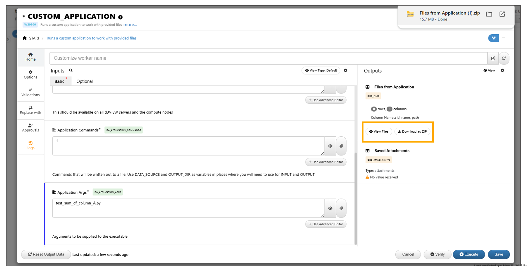 In Workflows, the Dataset outputs containing a path column will now support View and Download Files options within the worker.