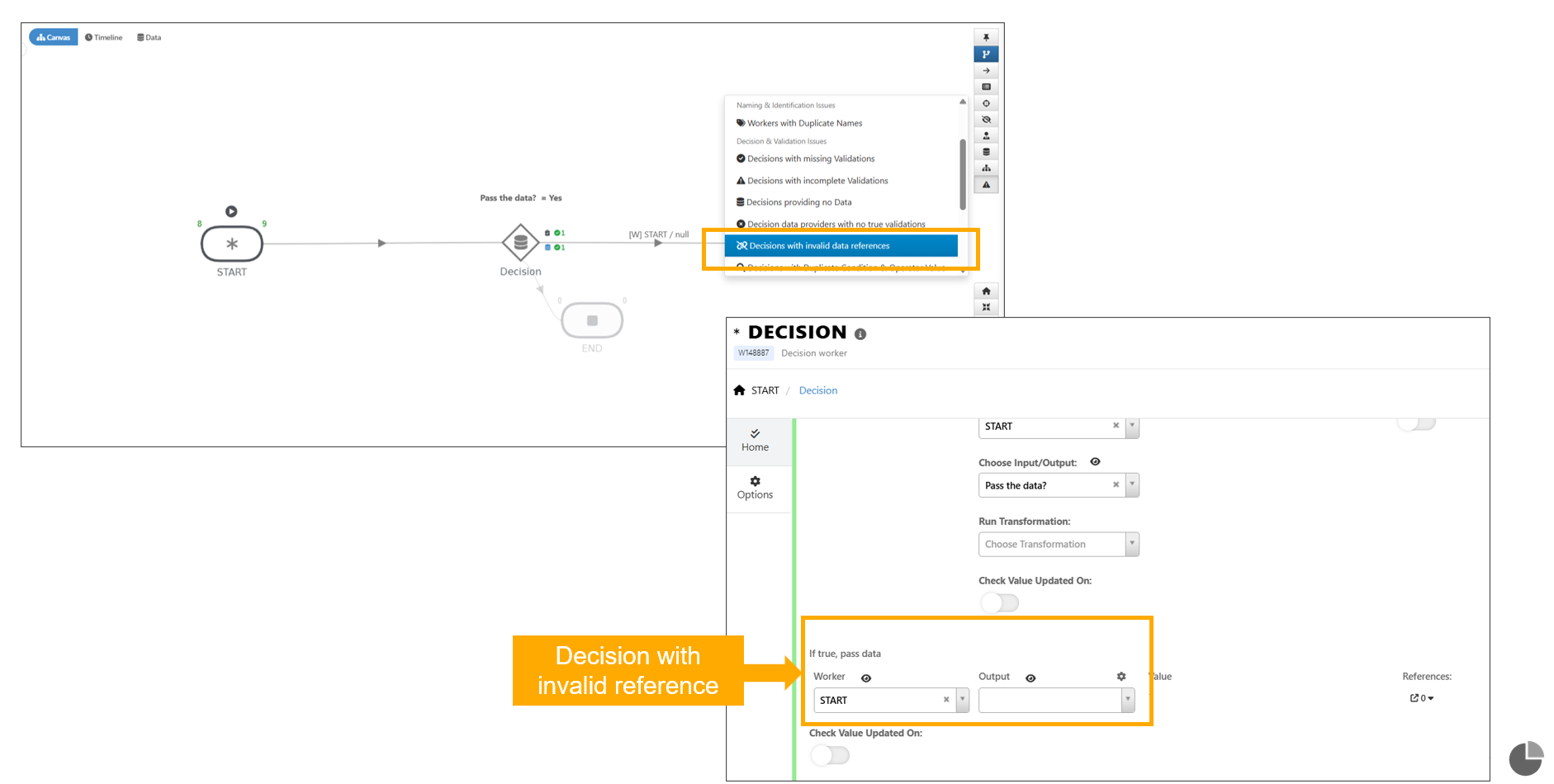Detect Bad Workflow Parts now includes a new option to identify ‘Decision with invalid data references’ in a workflow