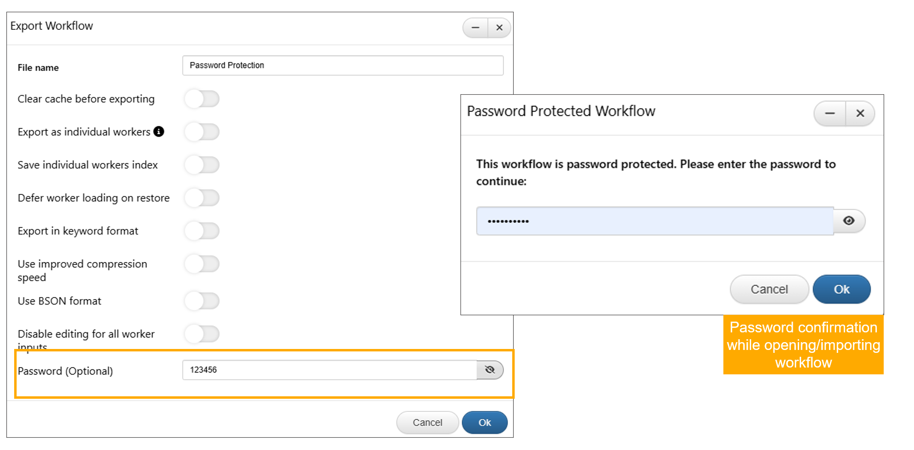Dataset inputs coming from ‘create using previous workers’ will now have an option ‘Mapped in the Format’ which will allow a new format of the dataset to be saved to the input based on the selected input.