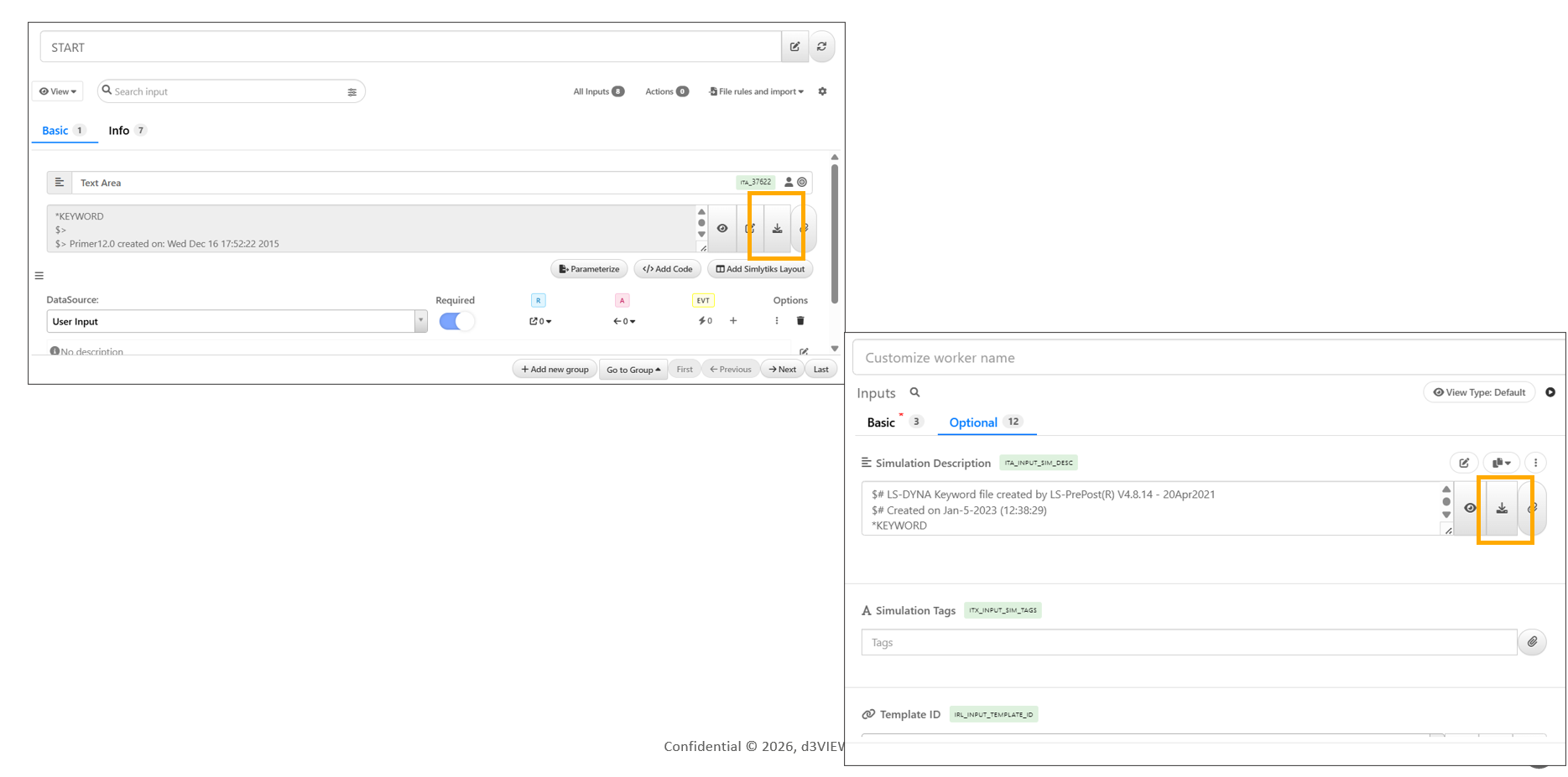 Dataset inputs in workers now have a Simlytiks button right beside the enlarge icon for quick access.