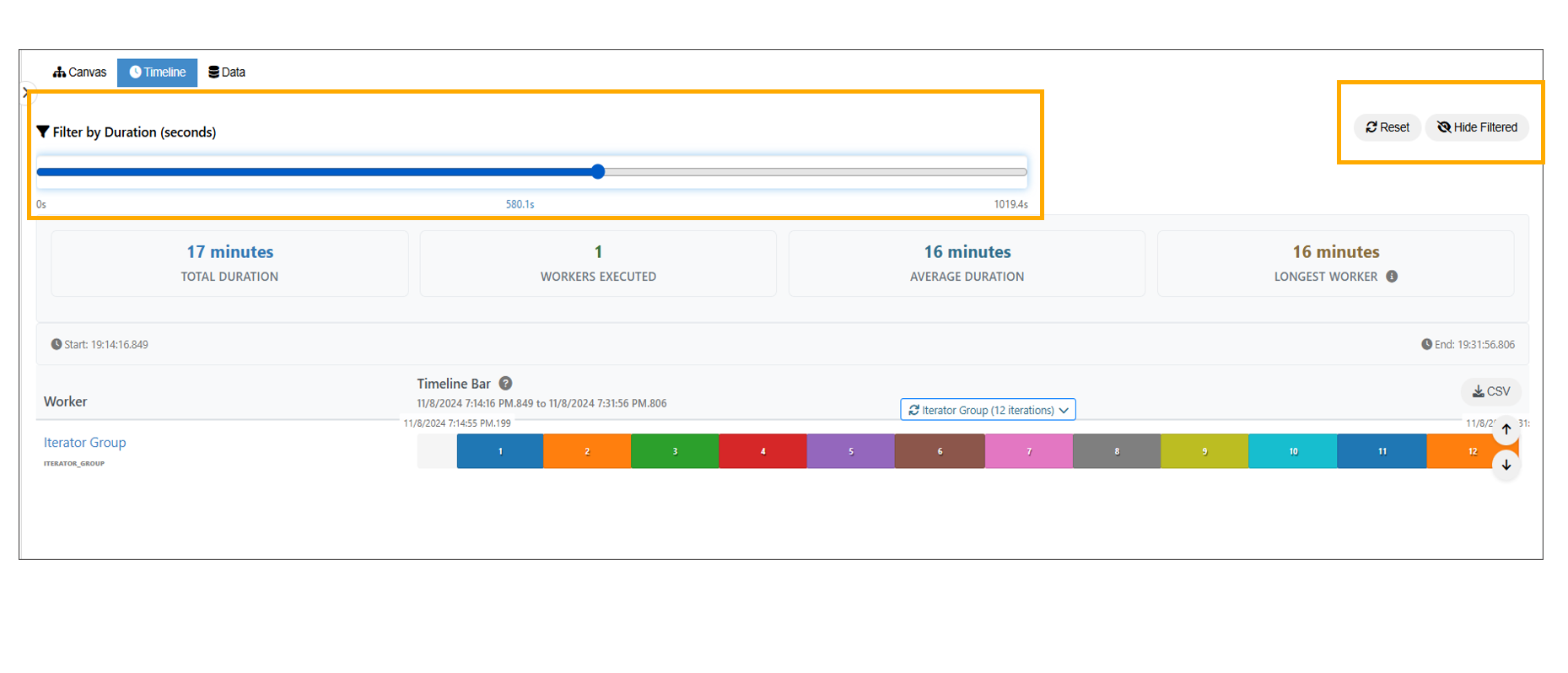 New ‘Timeline View’ is added to workflows which has execution-ordered visualization that includes summary cards, readable time labels, tooltips, iteration grouping with toggles, scroll-to-top/bottom for large flows and CSV export.