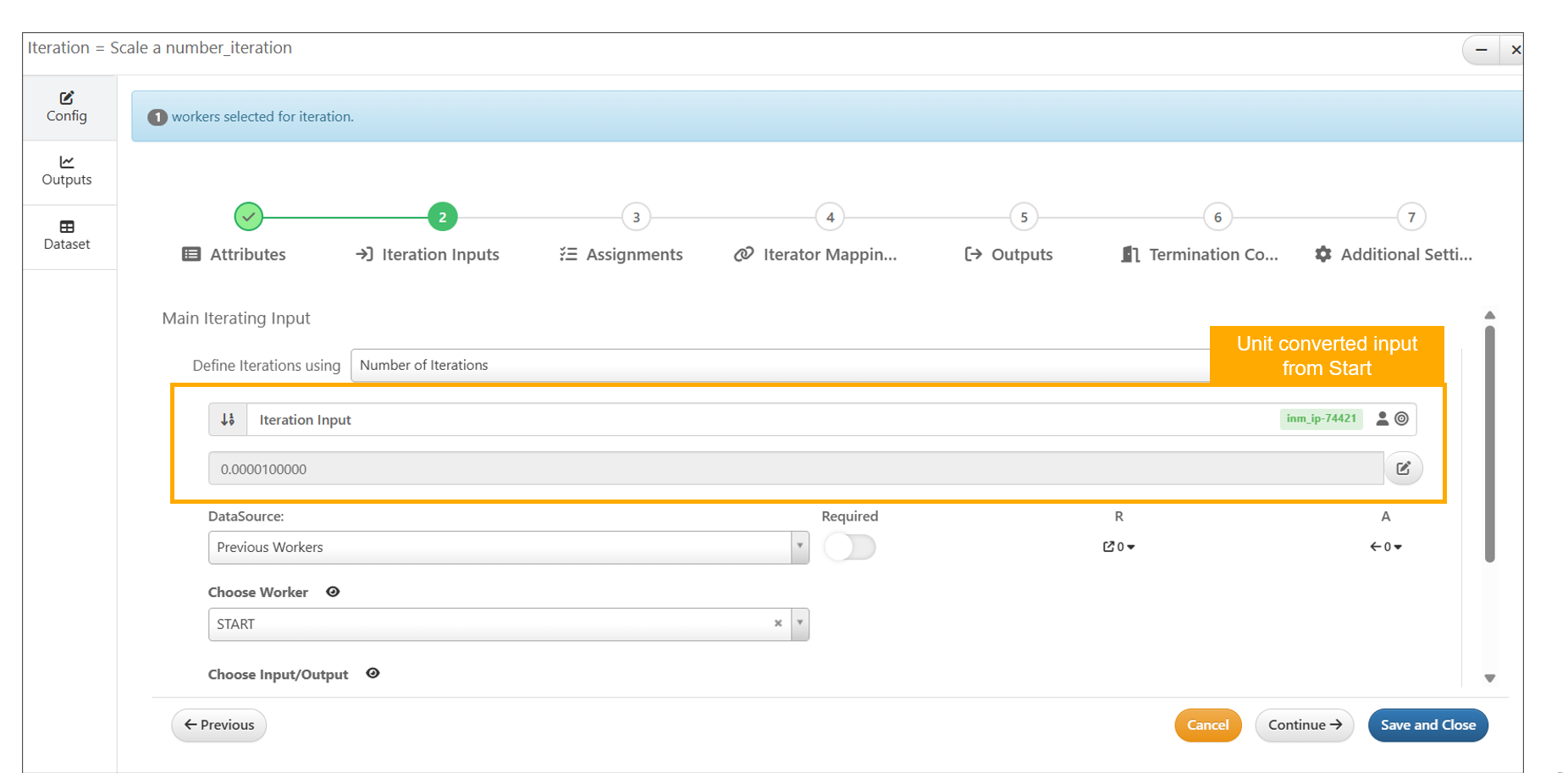 Start worker is initiated with guided view to add basic inputs to the worker in Workflows.