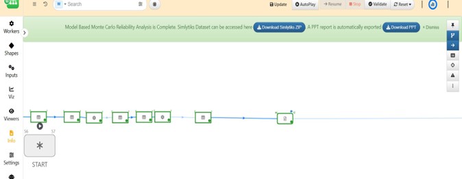 When the workflow execution is complete, a notification message with direct access to the Simlytiks Dataset and the PPT Slides will show up on the banner at the top of the canvas.