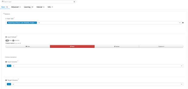 Model Based Monte Carlo Reliability Analysis Inputs¶