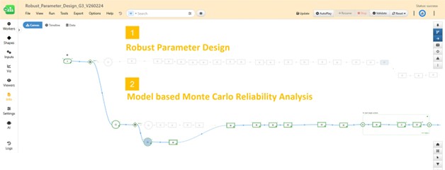 Model-based Monte Carlo Reliability Analysis (MMCRA) estimates the probability that a design will meet requirements under uncertainty caused by noise. A machine learning model is trained to represent system behavior, while uncertain inputs are sampled from probability distributions. A large number of random samples are propagated through the model to evaluate target variable performance.