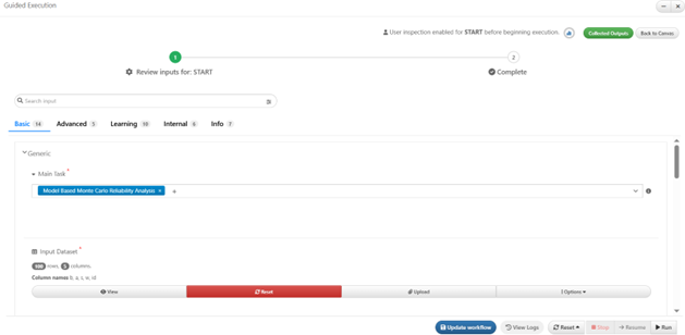 The following inputs and settings are used MMCRA task. For MMCRA task, we are interested in how the target values get affected by the noises near the same point with noises in the input values. The standard deviation for the probability is usually set to be a relatively small value to simulate the noises. Ideally, the vast majority of the sampling points target values should be falling into the threshold defined by the “Target Variables Lower and Upper Bounds” input dataset.