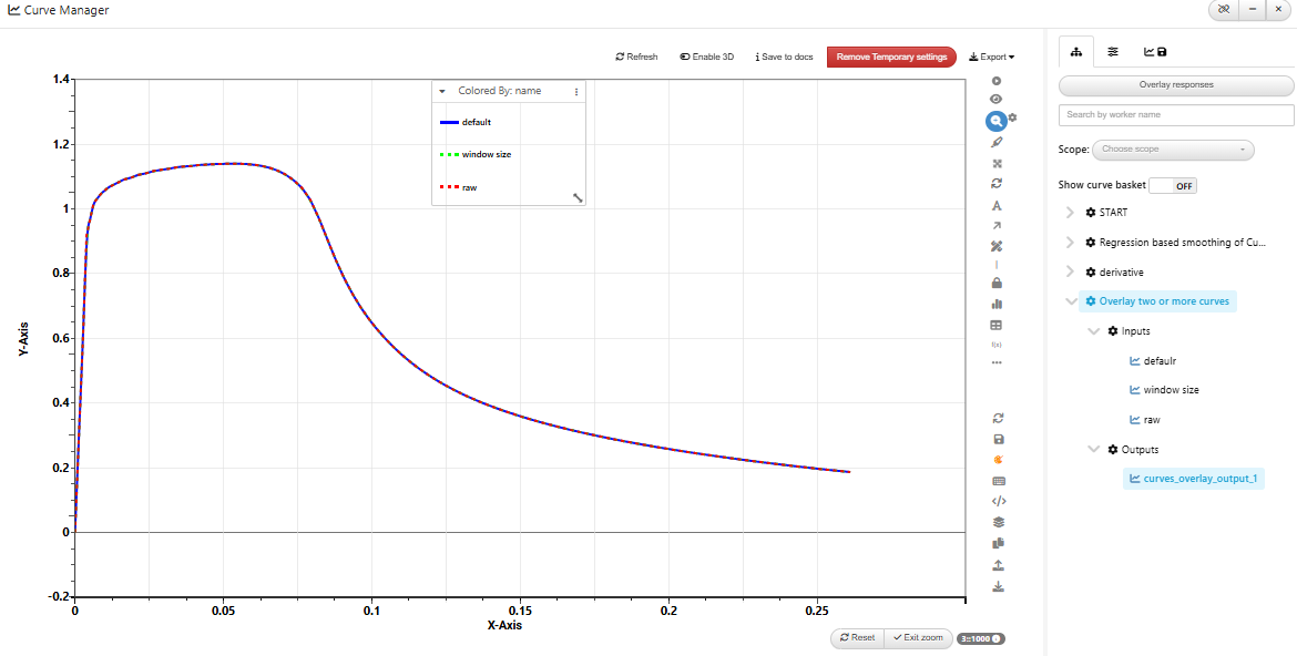 Overlay of outputs for both the window sizes options along with the input curve for Digitization points to be 1000 and Percentage of Points = 1.