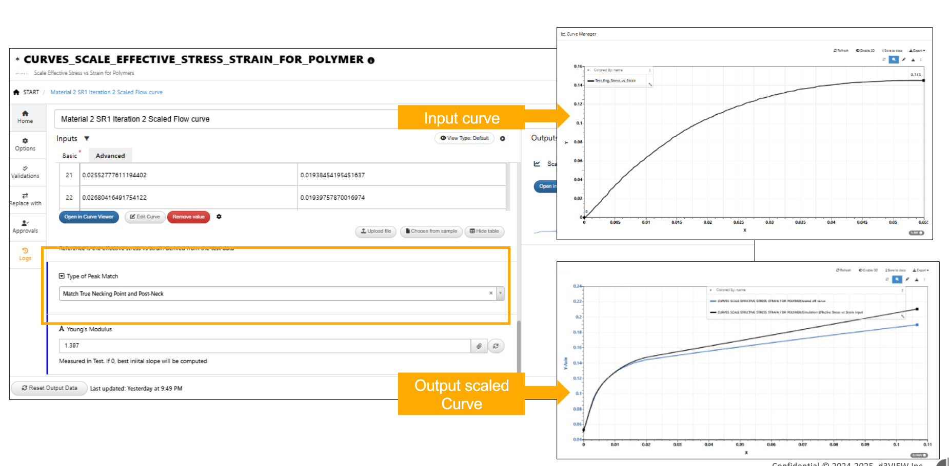 New input Young’s modulus is added to *CURVE_SCALE_EFFECTIVE_STRESS_STRAIN_FOR_POLYMER worker in Workflows to compute the slope of the curve.