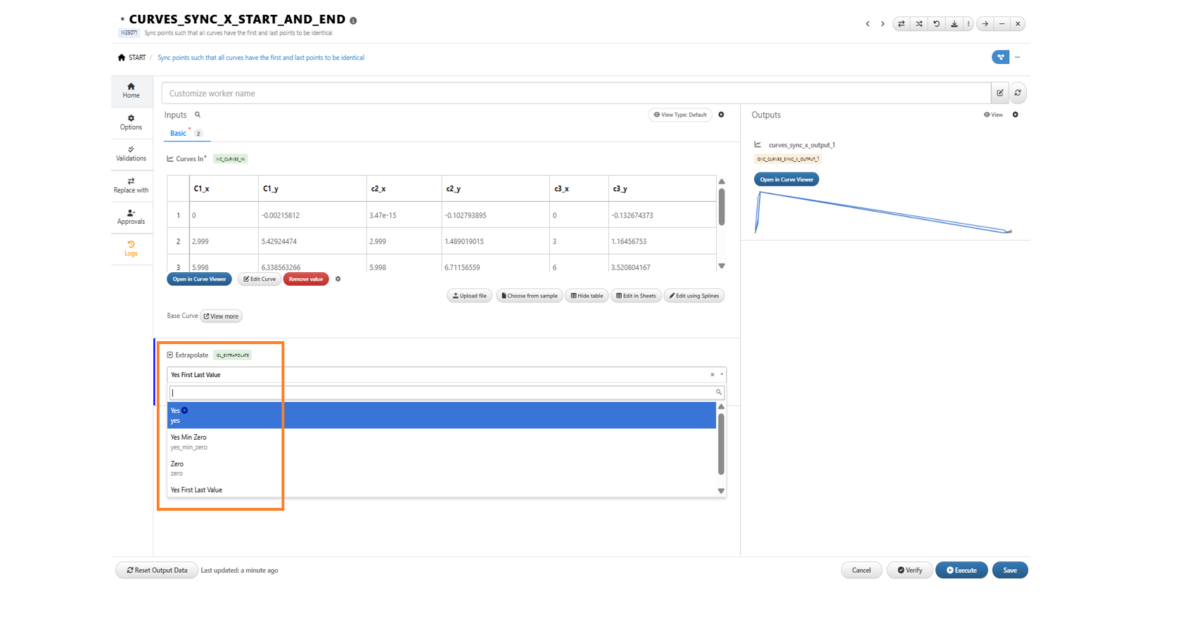 *CURVES_SYNC_X_START_AND_END: Added a new input parameter Extrapolate in the worker to support extrapolation handling during curve synchronization