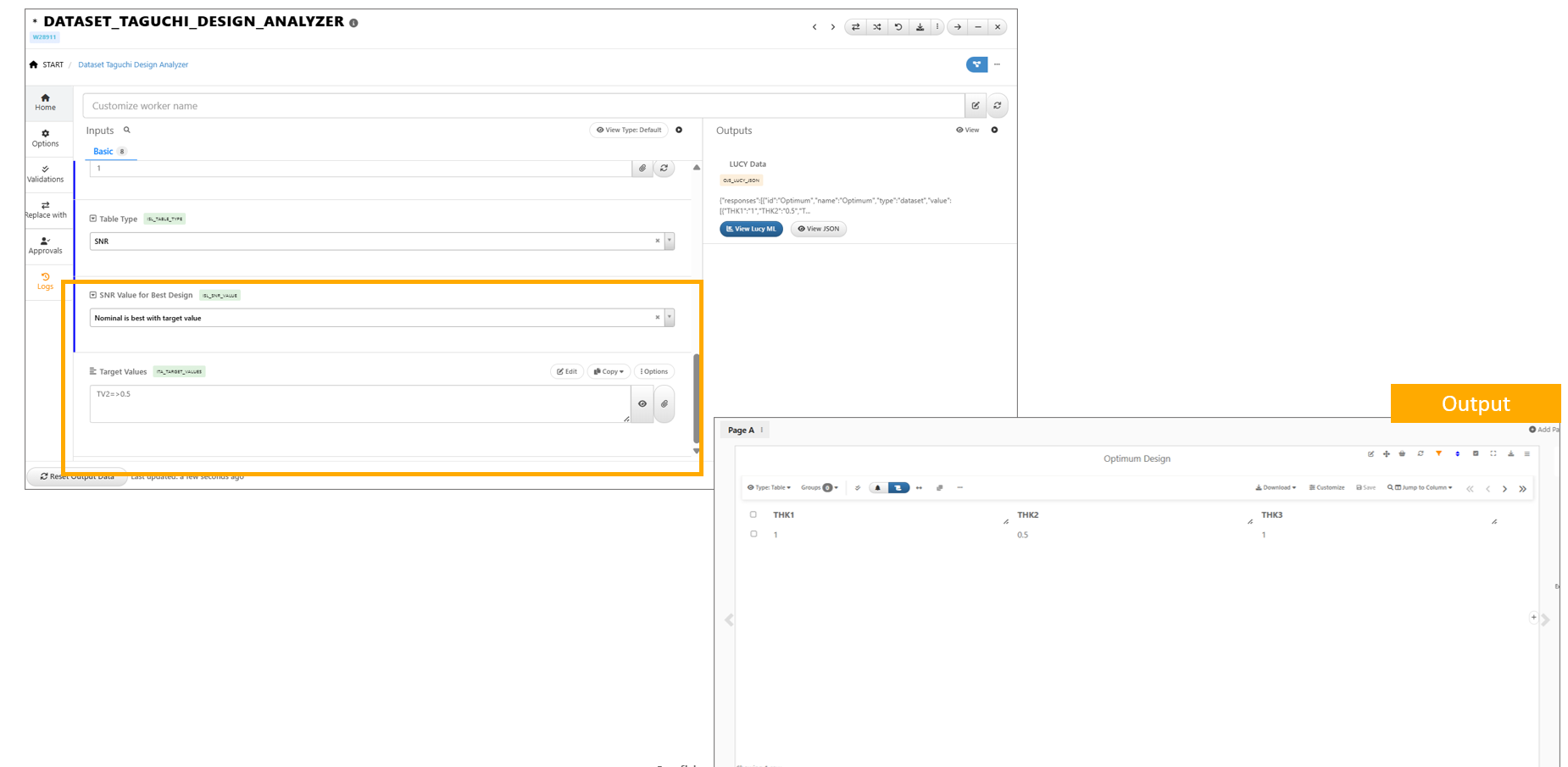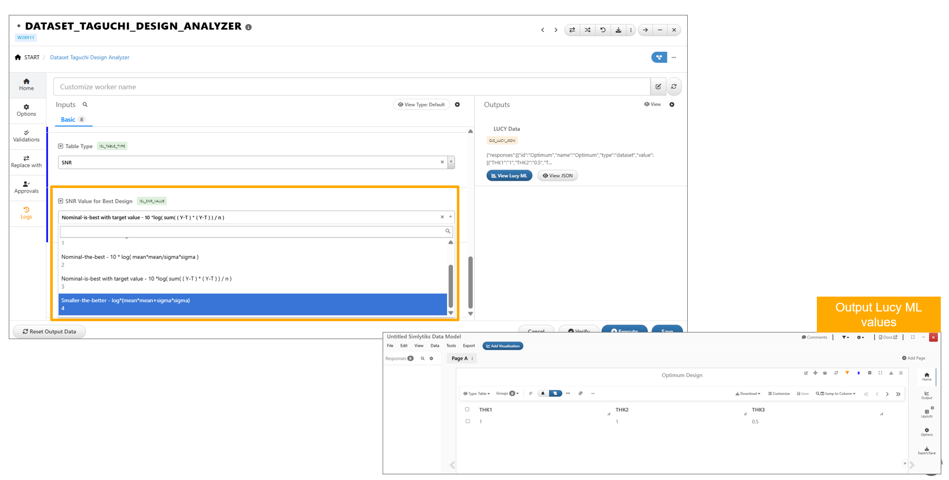 *DATASET_TAGUCHI_DESIGN_ANALYZER worker now includes new option ‘Smaller-the-better’ in the SNR value for Best Design input.