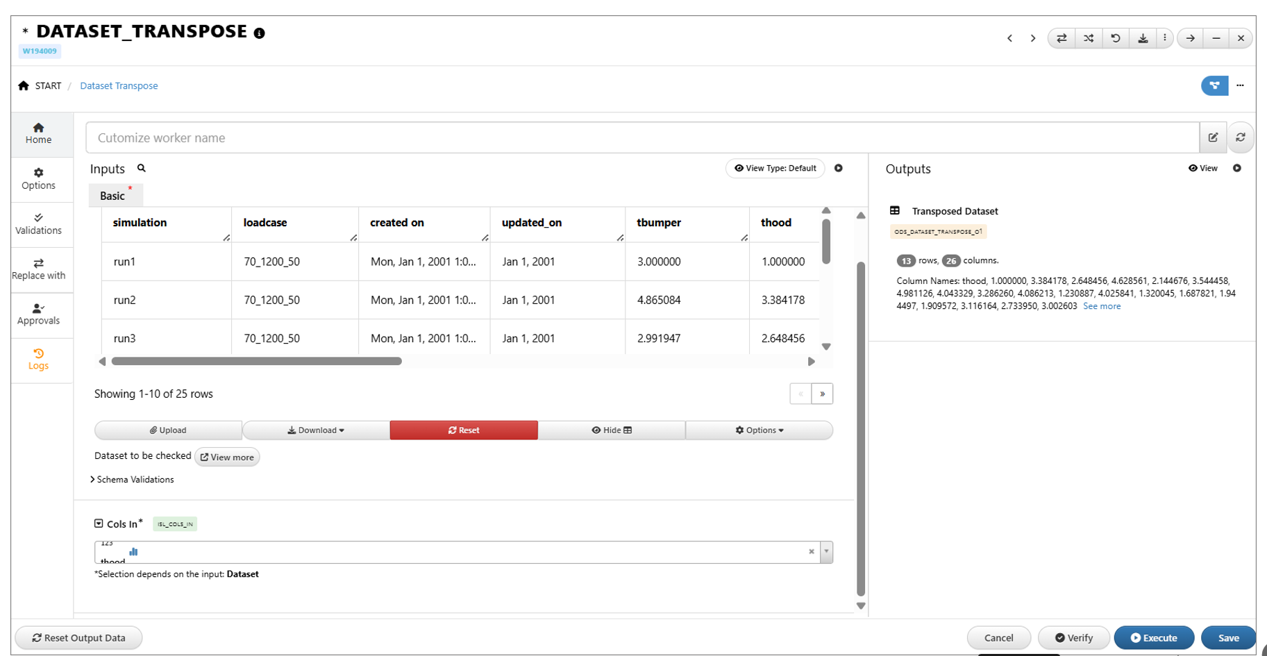 DATASET_TRANSPOSE worker now works as expected and shows the results.