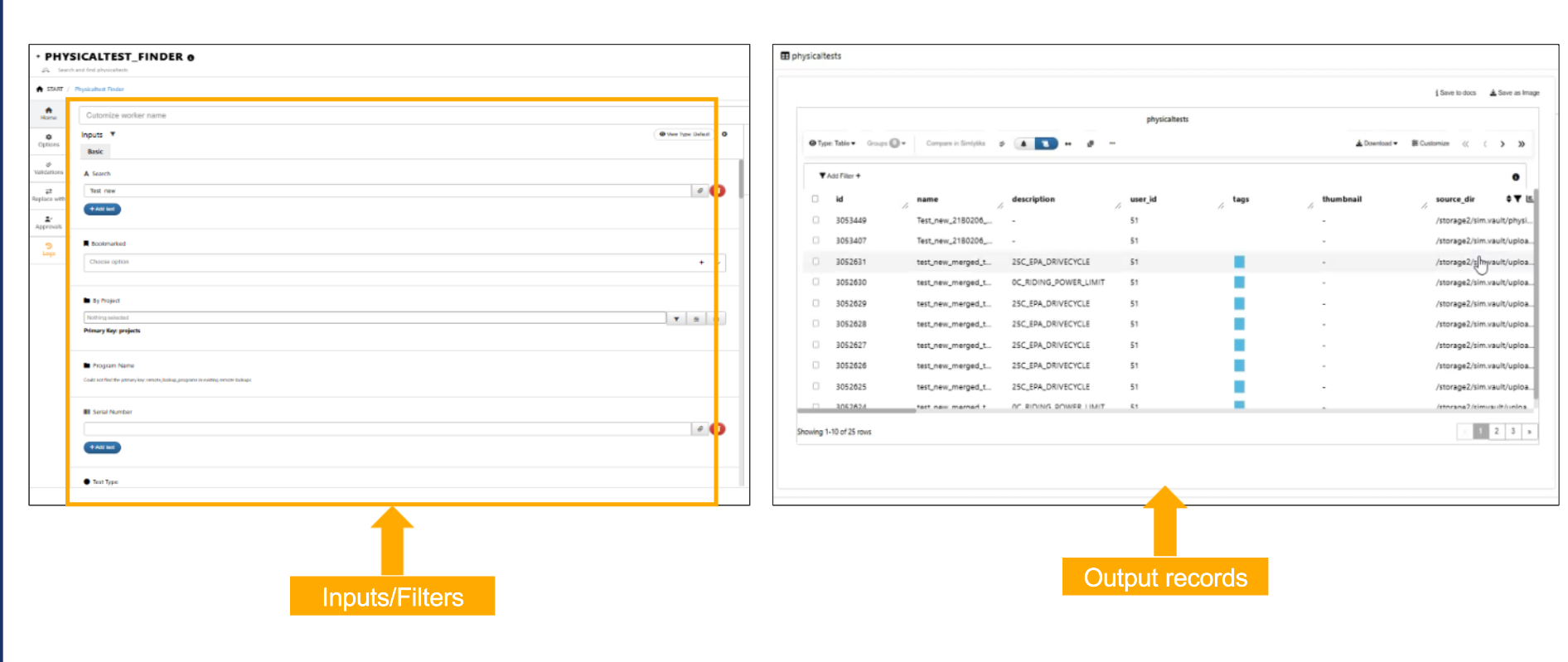 PHYSICALTEST_FINDER worker has all filters as separate inputs, and the records are fetched based on the inputs searched in Workflows.
