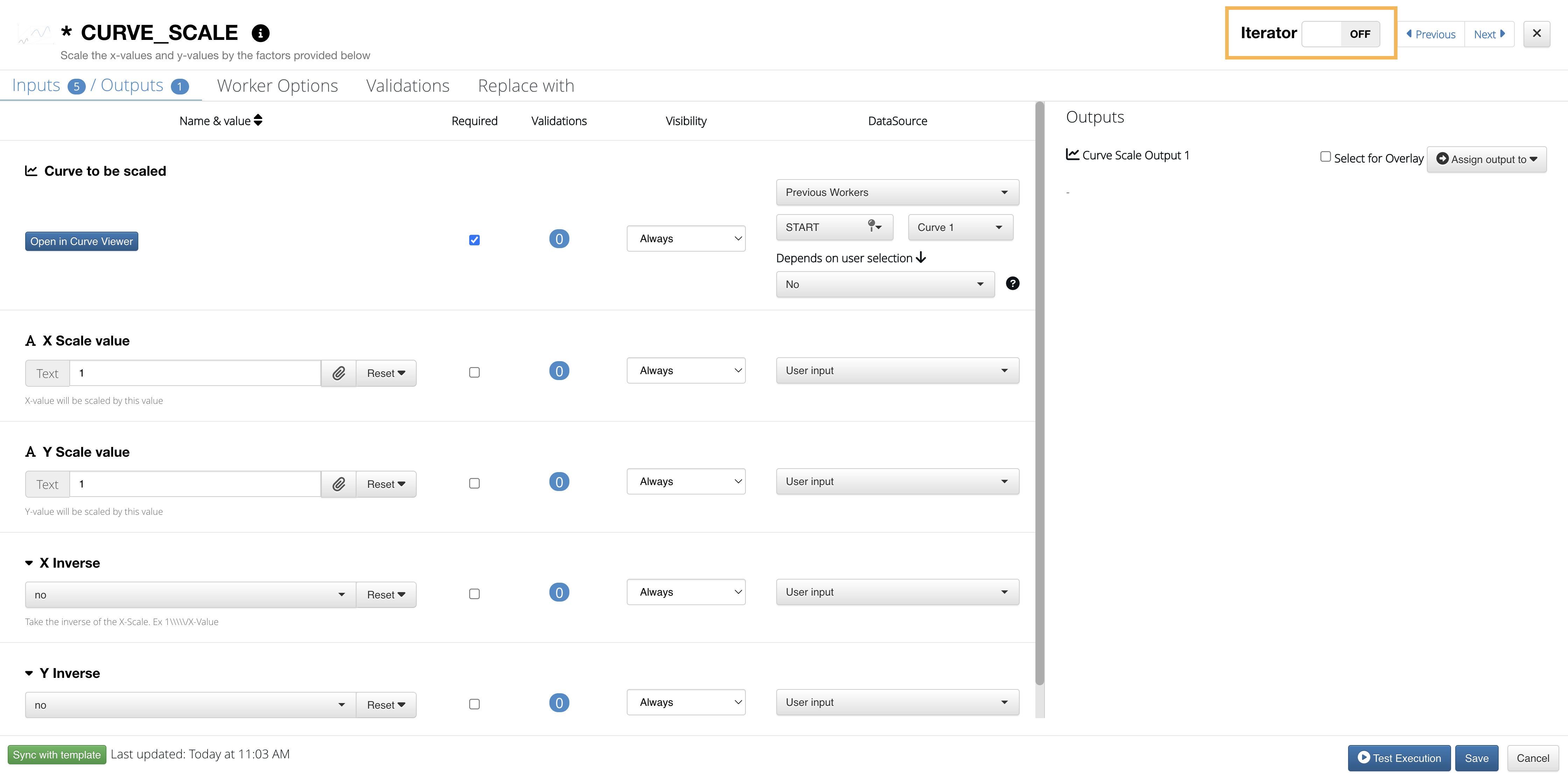 Then, we’ll add other desired inputs for the iterations. Here, we’ve created two iterations, one with 1.5 X scale and the other with a 1.5 Y scale. Once set up, we can test the execution of the iterations to view the cure outputs.