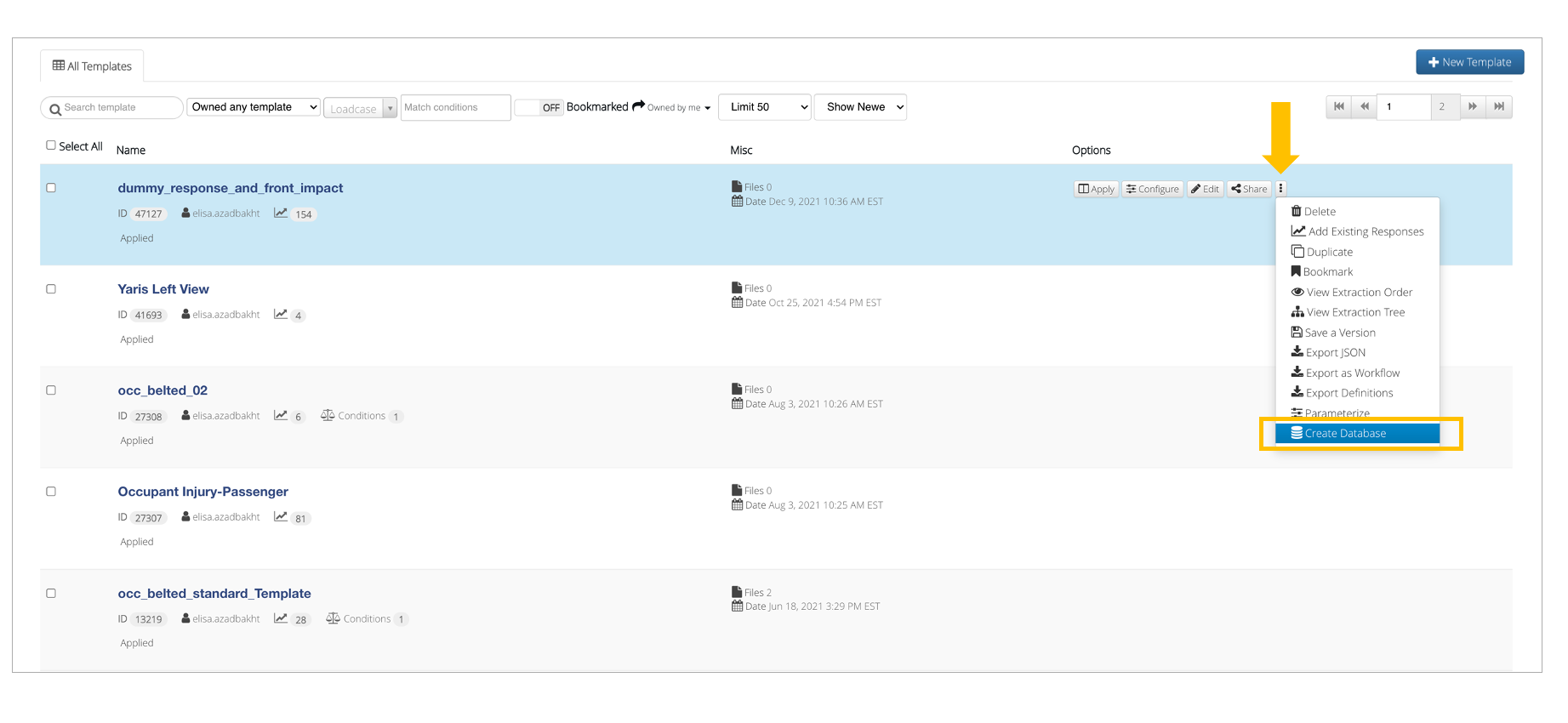 Go to your Templates main page to review, organize or edit your templates. Right click on a template to perform actions on it like exporting it as a JSON or editing it. Click on a template to open it up into another tab.