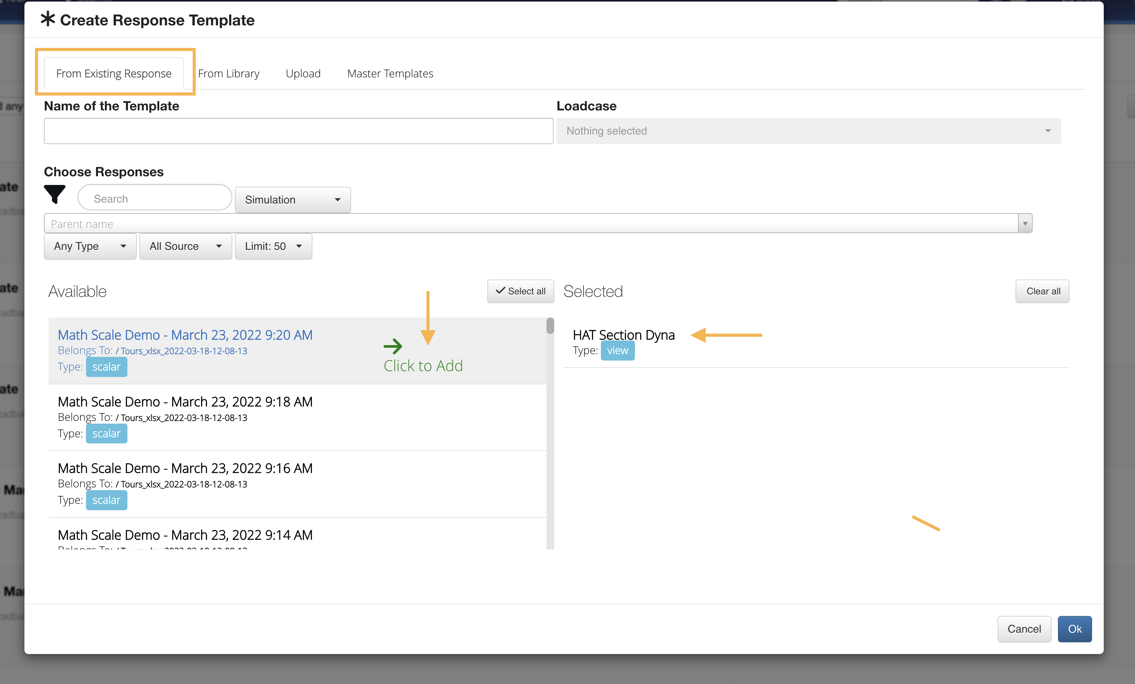 You can create templates from the responses of your simulations or physical tests. You can also create a template from a file.